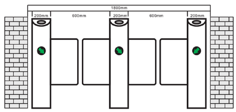 斷電時系統(tǒng)會自動打開擺臂成敞開狀態(tài),方便疏散人群,滿足消防要求。 |