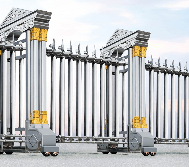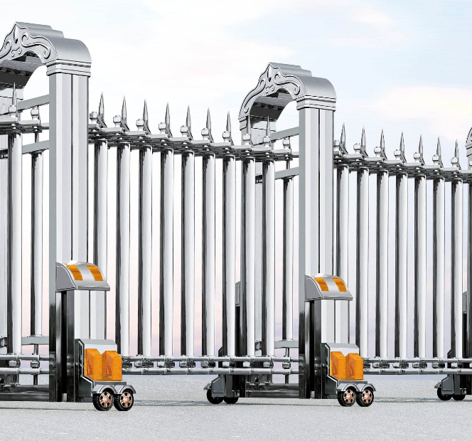 帝王系列伸縮門,是歐風(fēng)不銹鋼伸縮門,外觀霸氣陽剛,頂部樣式繁多,如皇冠、權(quán)杖、桃心、羅馬柱等。整體無焊接,不生銹,堅固耐用。久用不發(fā)燙,開合無噪音,十分大氣。