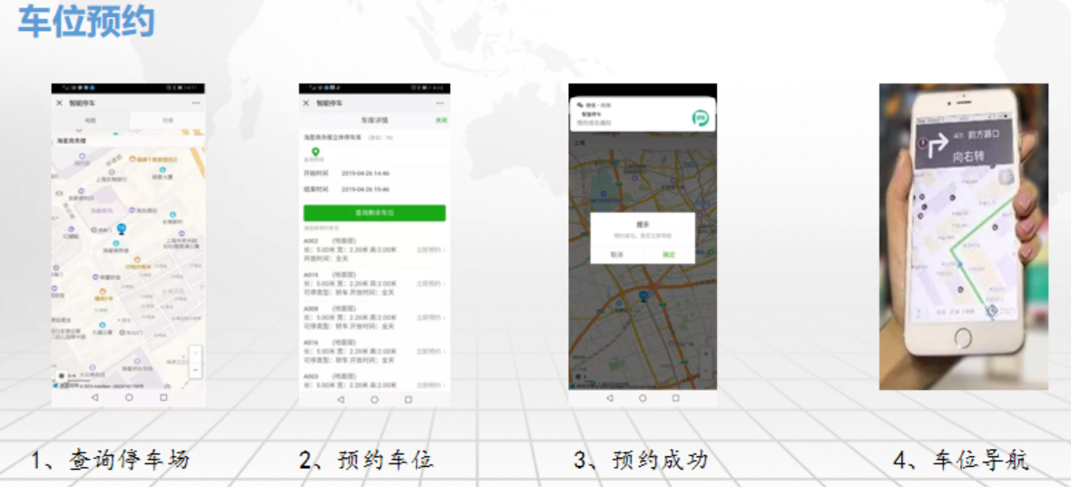 1.車位上安裝視頻車位檢測攝像機(jī)或地磁,實時監(jiān)測車位狀況,車主停車時,通過手機(jī)關(guān)注公眾號,選擇停車場進(jìn)行導(dǎo)航;