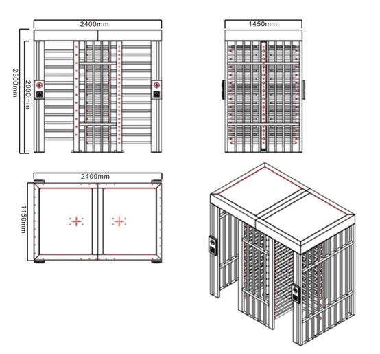 1450長*2400寬*2300高(MM) (可按現(xiàn)場通道寬度定制) |